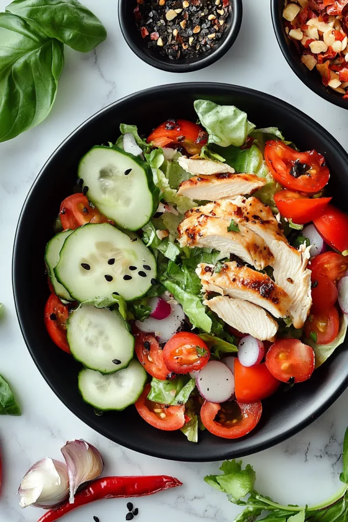 Tender, juicy, and packed with protein, chicken breasts serve as the perfect base for this salad. Grilled or pan-seared, they add a savory depth and make the salad filling yet light.