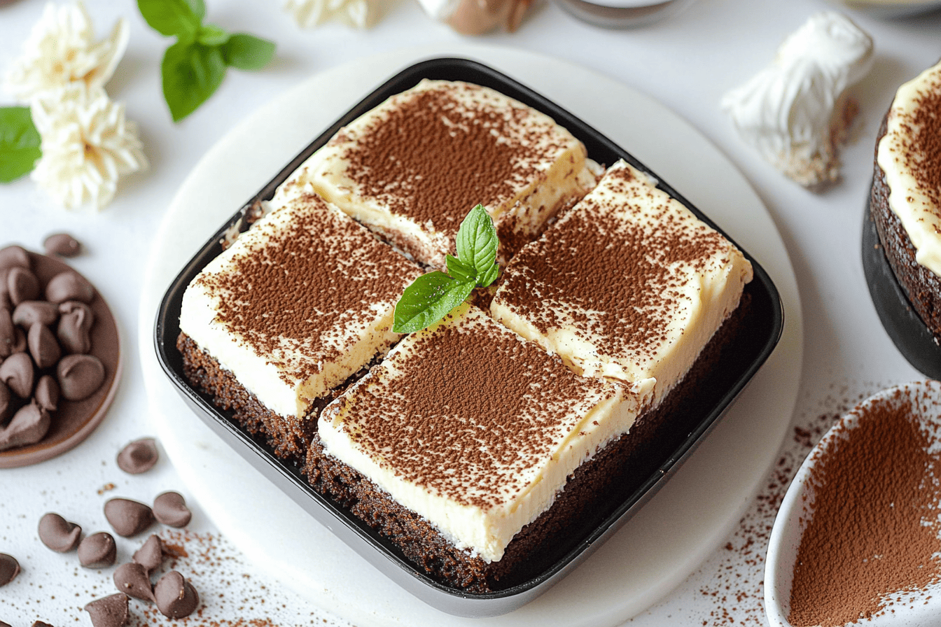 - Dollop of Whipped Cream and Chocolate Shavings: Take your Tiramisu Brownies to the next level by serving each slice with a generous swirl of freshly whipped cream and a sprinkle of chocolate shavings. The lightness of the whipped cream complements the richness of the brownie and mascarpone beautifully, while the chocolate shavings add a touch of elegance and extra decadence.