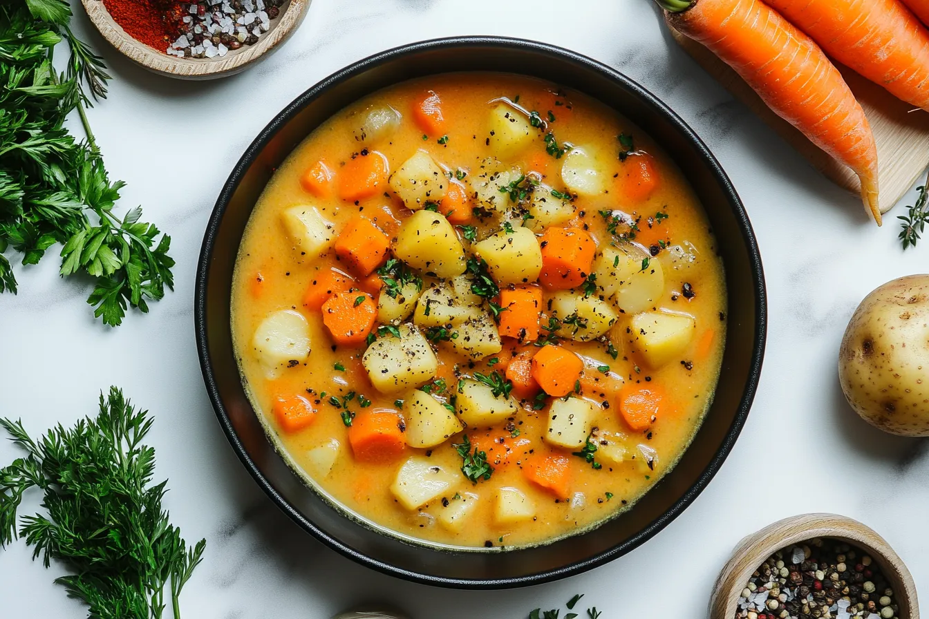 The soup is like a warm hug in a bowl, especially when it’s served with a sprinkle of fresh herbs or a dash of your favorite vegan cream. The carrots bring a natural sweetness, while the potatoes add a creamy, hearty base that balances everything perfectly. As the soup simmers, the kitchen fills with the irresistible aroma of roasted veggies and herbs, drawing you closer with every stir. It’s one of those recipes where the longer you let it cook, the more the flavors develop, and you’ll find yourself sneaking spoonfuls before it’s even done.