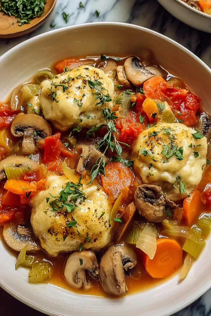 This Vegan Dumpling Stew is a comforting bowl of goodness, blending savory vegetables with fluffy dumplings. Perfect for cold days or cozy gatherings!