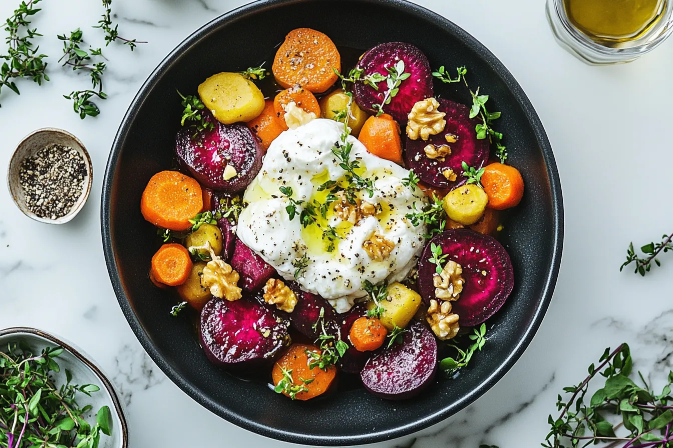 Topping it off with creamy burrata adds such a luscious texture, making every bite feel indulgent. As you break open the burrata, the soft, milky interior oozes out, mixing perfectly with the roasted vegetables and making each forkful a little moment of heaven. I love how the richness of the burrata complements the natural sweetness of the beets and carrots, while a sprinkle of fresh herbs like basil or mint can bring a burst of freshness to every bite. The crunch of toasted nuts or seeds, if you choose to add them, provides a delightful contrast to the creamy burrata and tender roasted veggies. It’s a salad that feels light but satisfying, perfect for any occasion where you want to impress without spending hours in the kitchen.