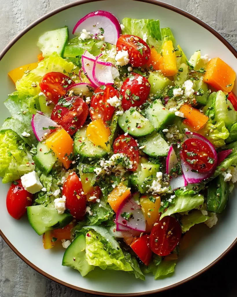This salad bursts with fresh vegetables, creamy avocado, and a zesty dressing that invigorates every bite. Each ingredient combines to create a satisfying crunch, perfect for any occasion.